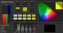 Otras cualidades de la pantalla como la resolución en blanco y negro, precisión de color y saturación se alejan mucho del ideal en las condiciones en las que se vende. Las tareas que requieren precisión en el color no pueden realizarse con un DeltaE 2000 que cae por encima del 10 en muchas secciones. Los valores son mejorados considerablemente tras realizar un calibrado y las diferencias con el ideal se reducen a un índice apenas noticiable. Tras el calibrado el DeltaE es, por ejemplo, de un 2.5 en la escala de grises y en colores.