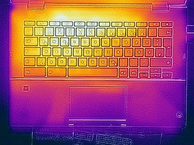 Las temperaturas de la carcasa del Asus Flip se mantienen dentro del rango verde en el uso diario (oficina, Internet). El desarrollo de calor aumenta en ciertas áreas bajo carga (las pruebas Octane V2 y Jetstream se ejecutan en un bucle), pero esto es sólo moderado en promedio