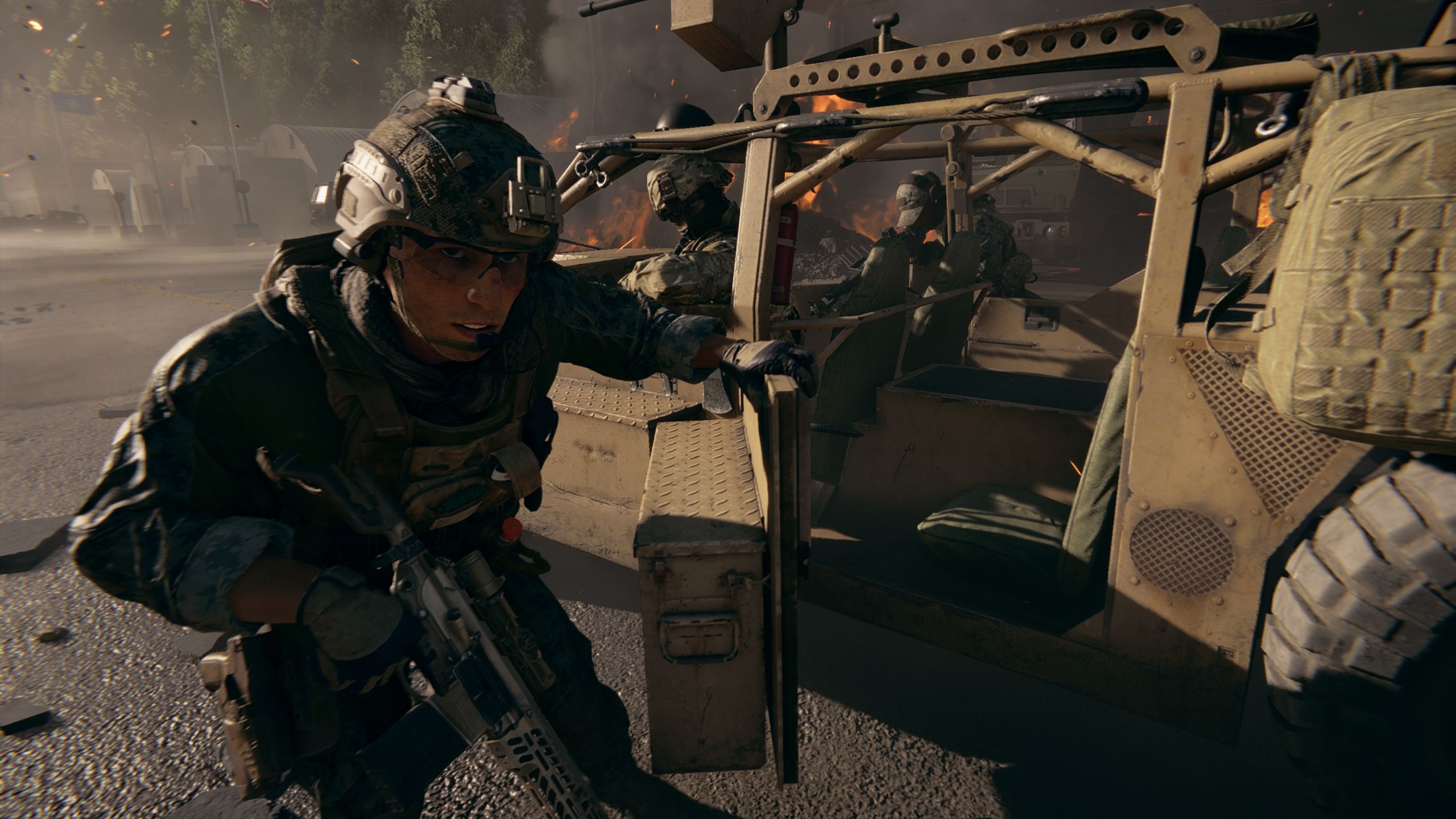 Para obtener resultados lo más reproducibles posible, utilizamos una secuencia del modo para un jugador, concretamente la primera misión, titulada "Siempre fieles" Como se muestra en el vídeo que figura a continuación, el punto de referencia se ejecuta durante algo menos de un minuto y presenta innumerables personajes, vehículos y explosiones. Según nuestras comprobaciones cruzadas y nuestra experiencia en las pruebas, el rendimiento en esta secuencia es aproximadamente comparable al del modo multijugador, sin desviaciones significativas.