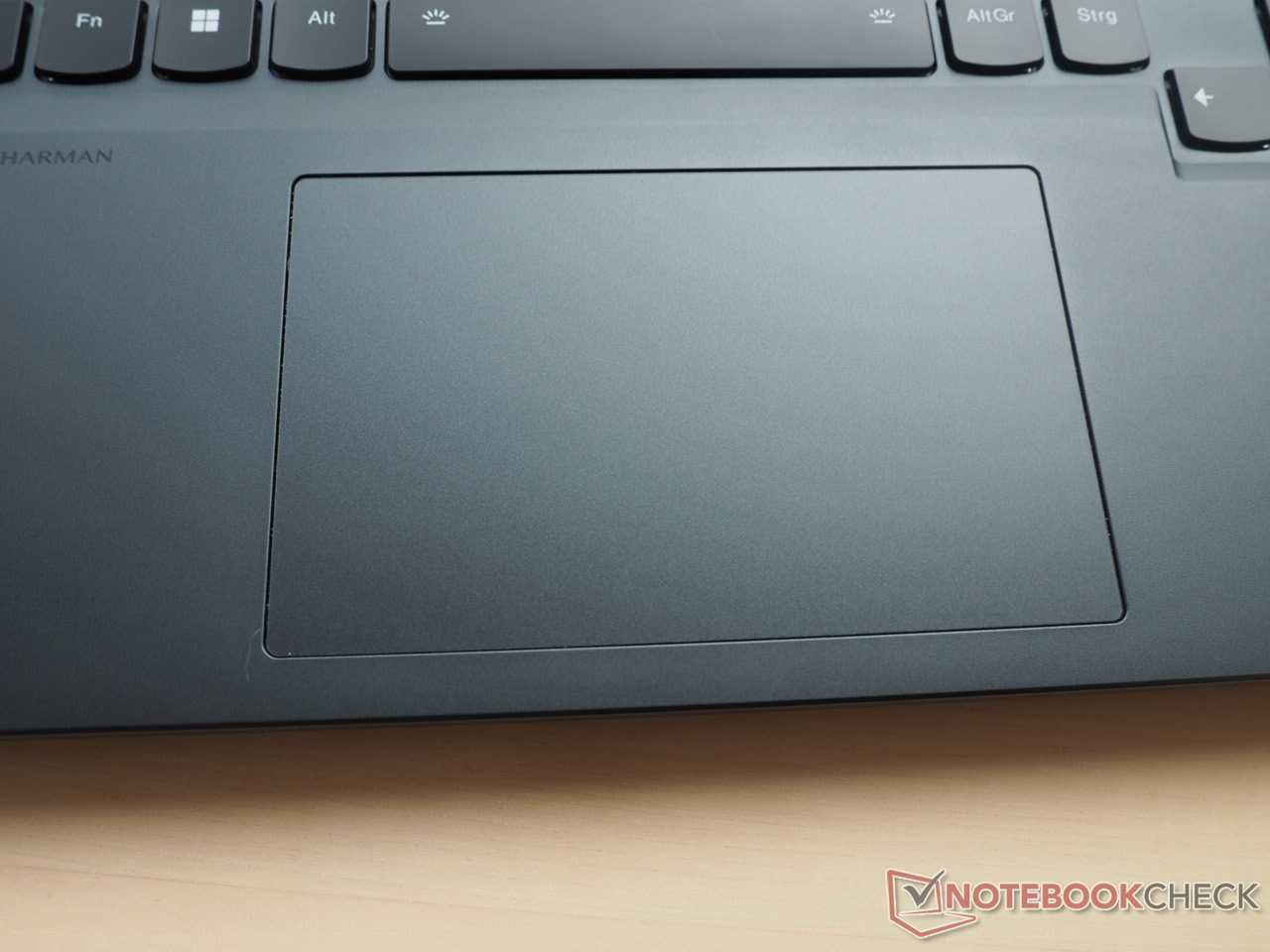 El suave touchpad de 12 x 7,5 cm parece suficiente para un dispositivo de 16 pulgadas y está situado relativamente a la izquierda. No encontramos problemas de precisión ni de deslizamiento, lo que contribuye a un funcionamiento fluido.