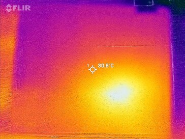 La carcasa se calienta hasta un máximo de 34.1 °C, lo que se nota un poco pero no es en absoluto incómodo. Esto significa que nunca experimentarás el sobrecalentamiento del tablet y que el SoC no tiene problemas con la disipación del calor. Durante el test de estrés con 3DMark y Wild Life Extreme, el sistema alcanzó valores bajos pero consistentes - incluso tras 20 ejecuciones del benchmark.