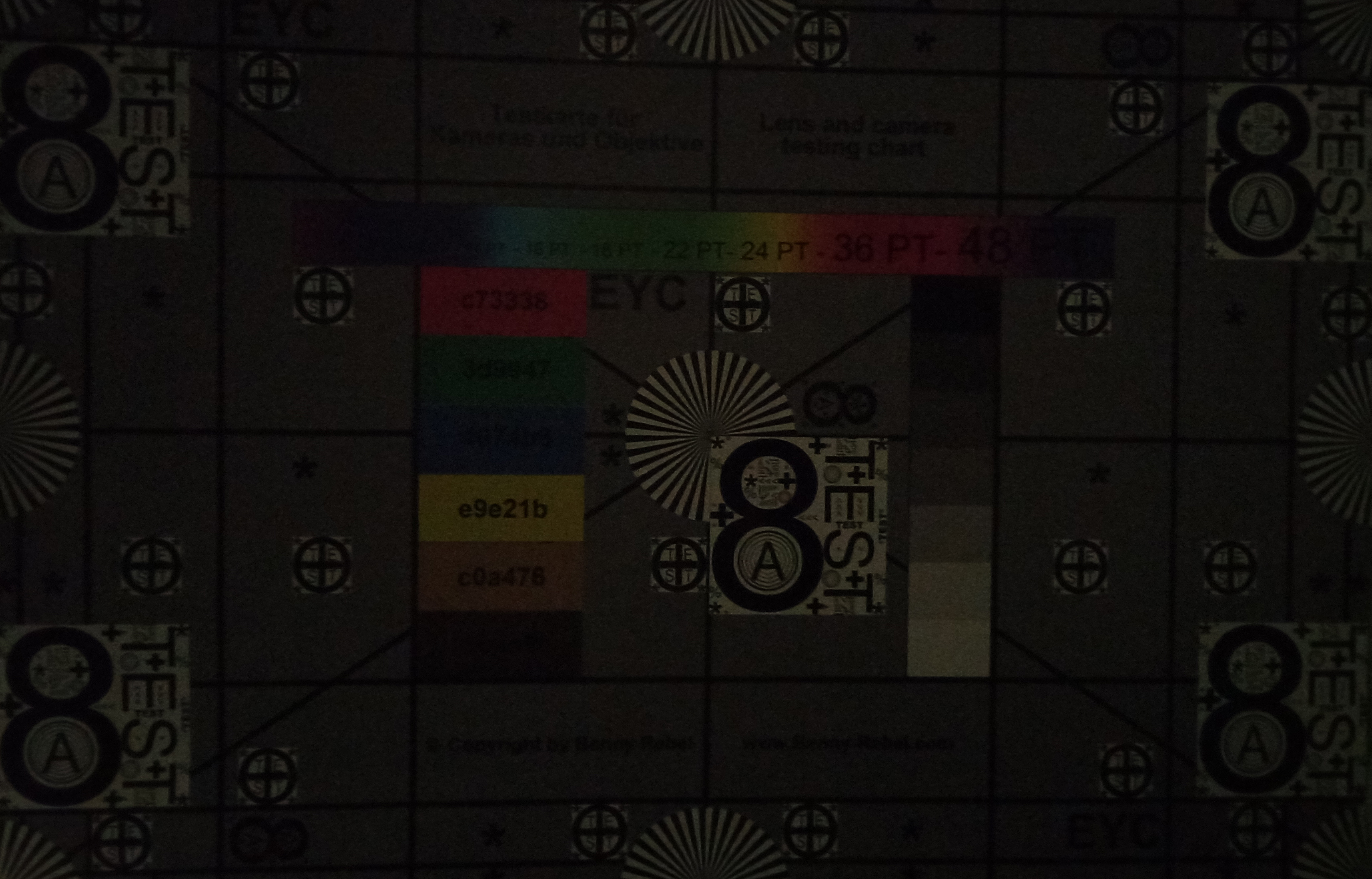 Las fotos de la tabla de pruebas revelan una sólida nitidez de la imagen en la zona central de la misma. Tanto la nitidez como el contraste disminuyen visiblemente en los bordes.