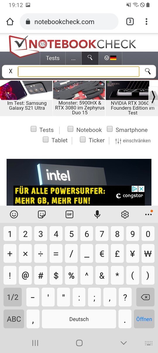 El económico teléfono de gama media revela algunos puntos débiles cuando se trata de la red doméstica. Dado que el módulo WLAN del Galaxy A12 sólo soporta el estándar IEEE 802.11b/g/n, el modelo Galaxy A sólo puede usarse en la banda de frecuencias de 2,4 GHz y, en consecuencia, las tasas de transferencia en nuestra prueba WLAN son muy bajas. En combinación con nuestro router de referencia, el Netgear Nighthawk AX12, determinamos tasas de transferencia de unos 50 Mb/s, lo que no es muy bueno ni siquiera para un smartphone de este rango de precios.