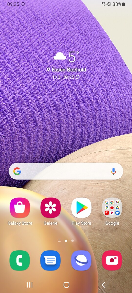 . Ya no hay una joroba de cámara propiamente dicha. En su lugar, sólo tres de los anillos de la cámara sobresalen ligeramente, por lo que apenas se tambalea cuando se apoya en una mesa. Las opciones de color son negro, blanco, azul y violeta.La pantalla está protegida por Corning Gorilla Glass 5 en la parte delantera; la parte trasera es de plástico reforzado con fibra de vidrio, y el marco tiene un aspecto metálico pero también es de plástico. La calidad de construcción del Galaxy A32 es buena y convence con unas dimensiones estrechas y uniformes. Sin embargo, el smartphone de Samsung parece bastante torpe en la mano y es comparativamente pesado.