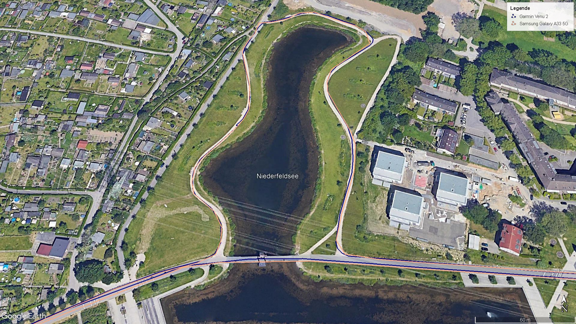 El Galaxy A33 5G también proporciona datos de posicionamiento bastante precisos en el uso diario. En comparación con el Garmin Venu 2, registró nuestro recorrido de aproximadamente 10 kilómetros en bicicleta con casi la misma precisión.