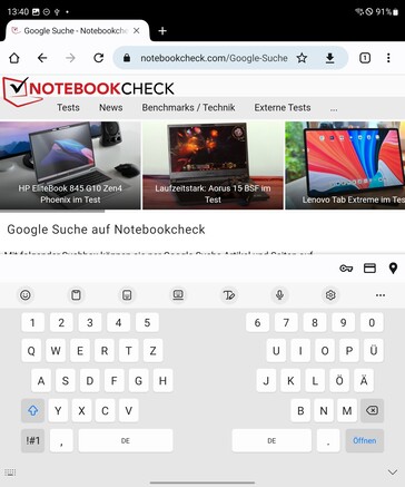 En nuestra prueba de batería Wi-Fi real, que se llevó a cabo con un brillo de pantalla adaptable de 150 cd/m², la batería de 4.400 mAh ofrece una buena autonomía de casi 13 horas, lo que significa que puede durar unos 90 minutos más que elFold4en nuestra prueba. Con el panel externo más pequeño, medimos una autonomía de 817 minutos.