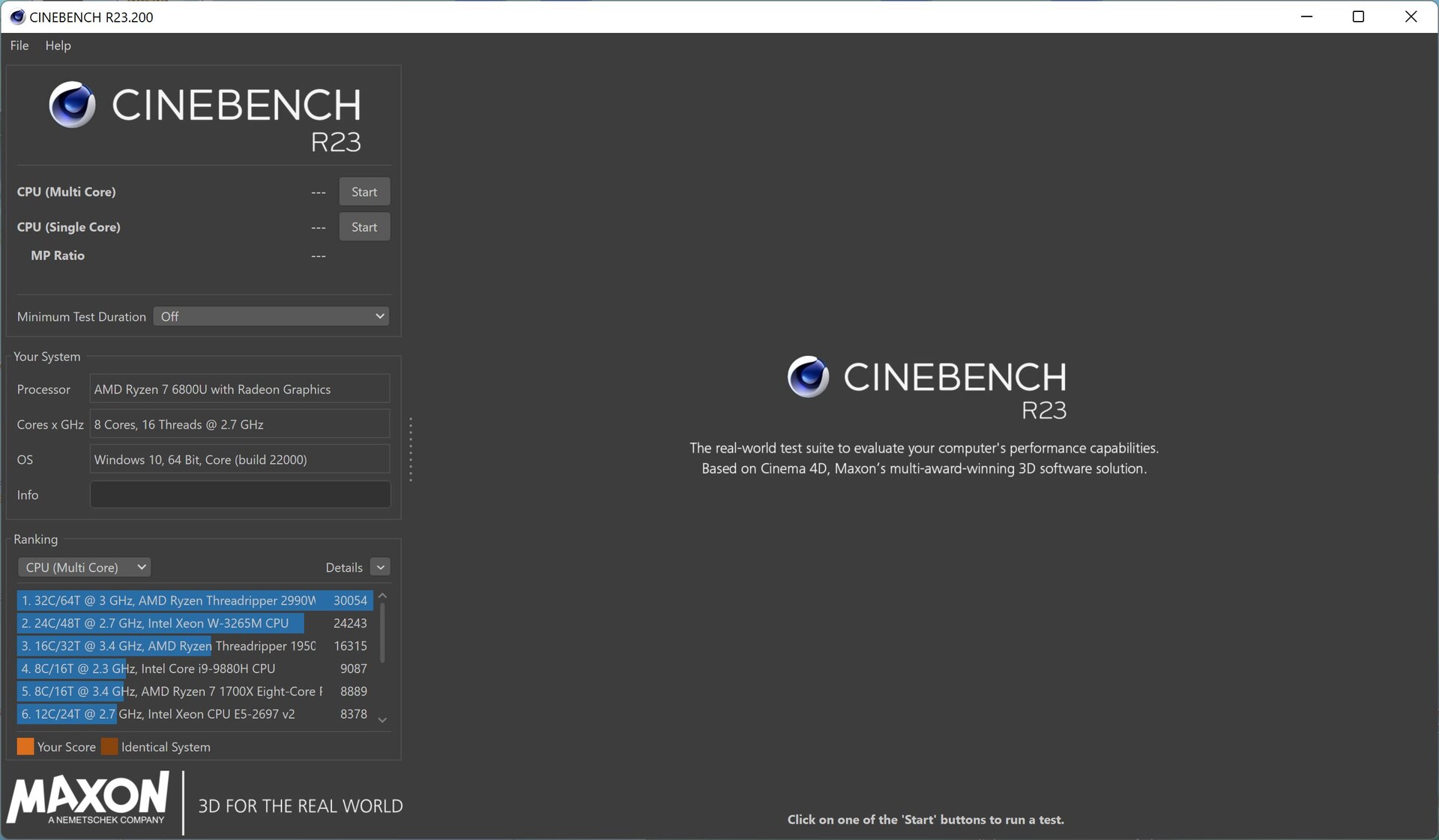 Nuestro sistema de pruebas para el nuevo AMD Ryzen 7 6800U es el Asus Zenbook S 13, que es extremadamente compacto con poco más de 1 kg. Asus ofrece tres perfiles de energía diferentes y usamos la configuración de Rendimiento para las siguientes pruebas (Plan de Energía Windows: Recomendado por Asus, Modo de Energía Windows: Mejor Rendimiento). La CPU puede consumir hasta 30W y se asienta en 25W bajo cargas de trabajo sostenidas, por lo que probablemente sea una de las implementaciones más rápidas. El análisis completo del Asus Zenbook S 13 se publicará en un par de días.