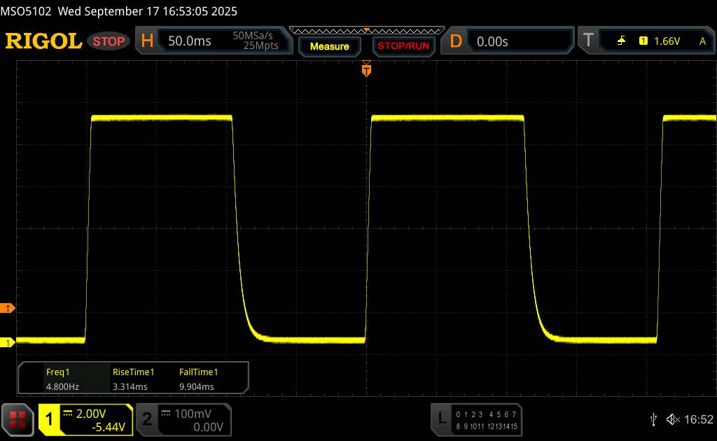 En el lado positivo, la pantalla está completamente libre de parpadeos bajo el osciloscopio.