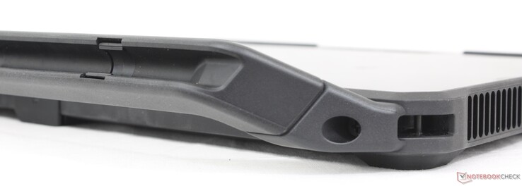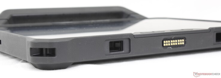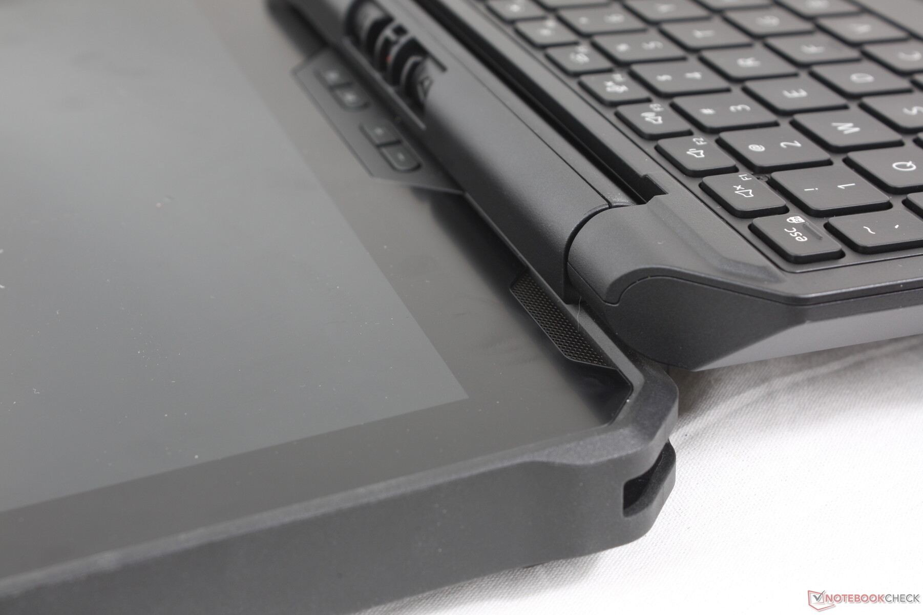 La carga se realiza a través de USB-C universal en lugar de depender de cargadores de barril propietarios comunes en los dispositivos Rugged más antiguos. El Durabook R8por ejemplo, aún se entrega con un anticuado cargador de CA de barril. La tableta integra notablemente dos puertos Thunderbolt 4 para ser compatible con una amplia gama de accesorios y estaciones de acoplamiento.