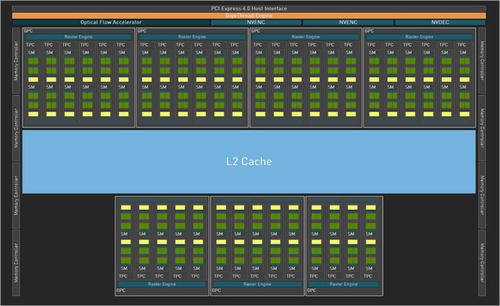 Esto también concuerda con la forma en que Nvidia ha diseñado Ada para ser mucho más eficiente energéticamente que Ampere. Dejando a un lado las ventajas del proceso 4N personalizado, la GPU Ada primero intenta alcanzar los límites máximos de reloj y voltaje antes de aumentar la potencia, lo que resulta en un mayor rendimiento y una mayor eficiencia con el mismo valor de potencia en comparación con Ampere.