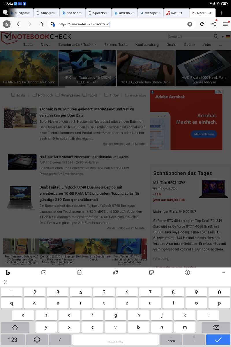 Esto también se refleja en los tiempos de ejecución, ya que aquí la comparación está muy reñida. En la prueba práctica WLAN (150 cd/m²), sin embargo, la MatePad Pro 13.2 ofrece resultados muy diferentes según el navegador utilizado.