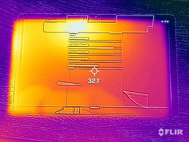 Las temperaturas de la superficie se mantienen dentro de un rango no crítico. Incluso bajo carga completa prolongada, la superficie del Tab P11 Plus nunca se calienta de forma incómoda. También usamos el test de batería GFXBench y el benchmark 3DMark para comprobar el comportamiento delHelio SoC bajo carga pesada.