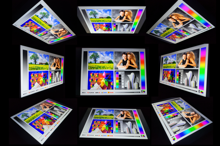 La medición del brillo en un total de nueve puntos muestra una importante caída de intensidad, especialmente en el borde superior del display. En el centro, el panel IPS emite un máximo de 410 cd/m² con un fondo de pantalla blanco puro, que es una tasa sólida en este rango de precios.