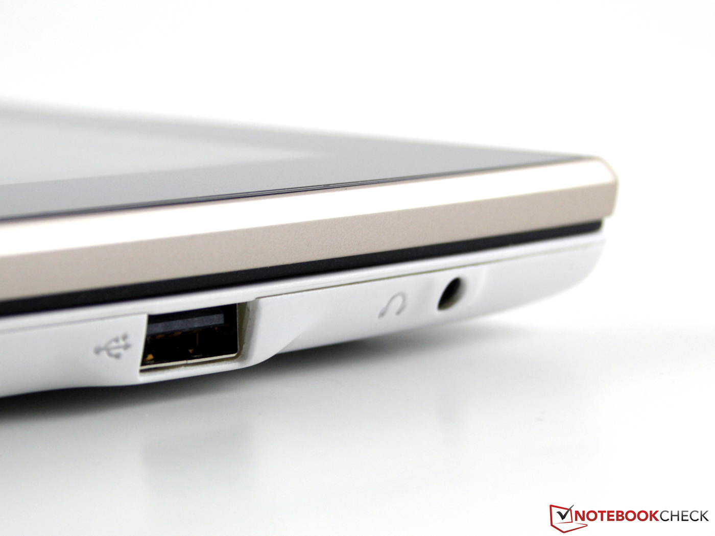 El Slider tiene una generosa equipación de interfaces. El cable de carga de 40 pin, que también es un cable USB para transferir datos con el PC, está situado en la trasera de la carcasa. No podemos decir qué opciones mantiene abiertas el fabricante con tantos pins. No hay muchos accesorios, tales como una estación de docking. Es el mismo puerto que tiene el Eee Pad Transformer para conectar su puerto teclado. Sin embargo, el Slider no lo necesita.
