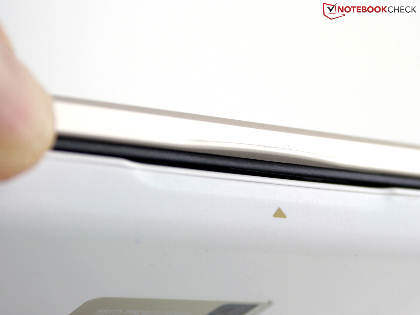 Asus utiliza plástico y una aleación de magnesio duro para su tablet de 10.1". El peso de 976 gramos es relativamente alto para un tablet, pero cabe esperarse en vista del teclado integrado. Comparaciones: El 10" Sony S sólo pesa 591 grs; un iPad 2 (9.7") 601 grs y un Samsung Galaxy Tab 10.1v (10.1") sólo pesa 574 grs. Por tanto, el Slider es un auténtico peso pesado.