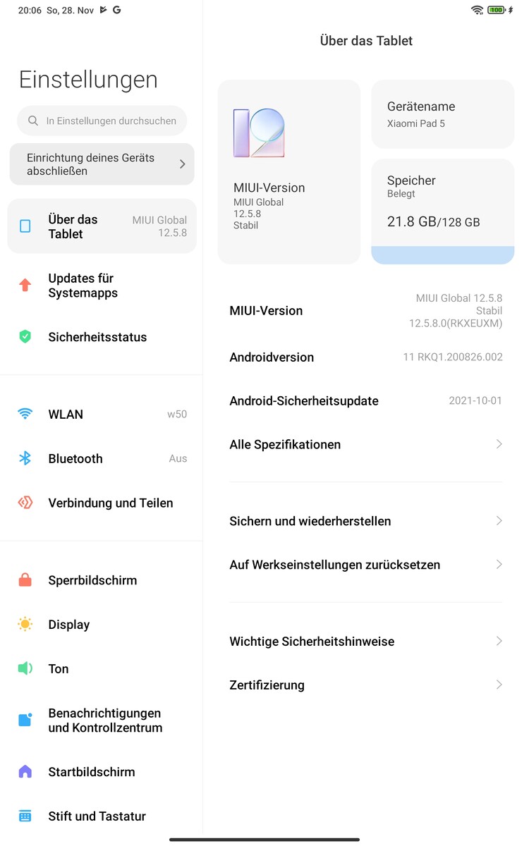 La Pad 5 ejecuta Android 11, que Xiaomi ha superpuesto con su interfaz de usuario interna MIUI 12.5. En el momento de las pruebas (mediados de diciembre), las actualizaciones de seguridad de Android están al día desde el 1 de octubre y, por tanto, siguen siendo bastante actuales.