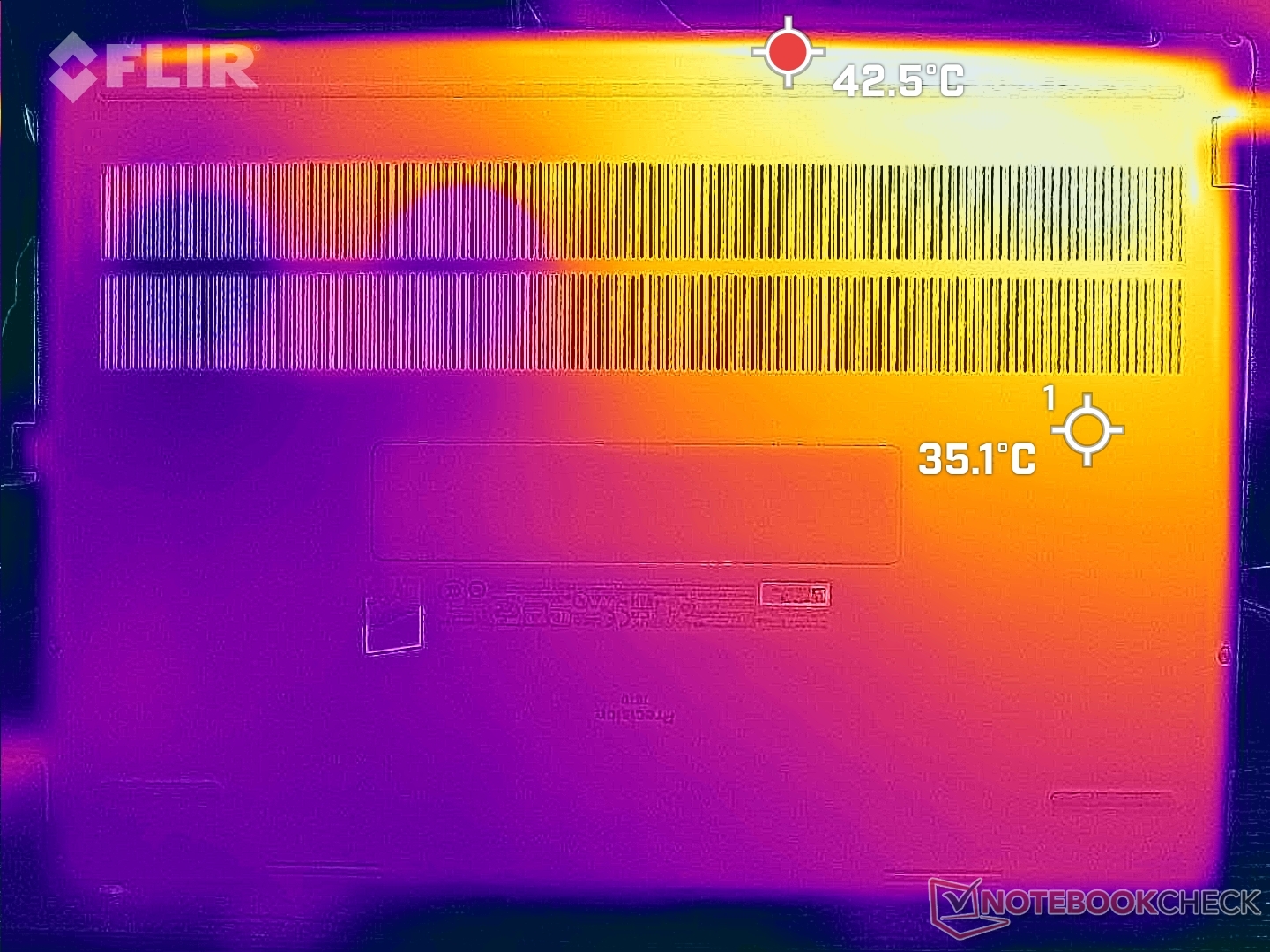 Podemos registrar puntos calientes de 51 C y 46 C en la parte superior e inferior, respectivamente, cuando se ejecutan cargas extremas. La mitad izquierda del chasis siempre estará más caliente que la derecha debido a la posición de la solución de refrigeración y los procesadores en el interior.