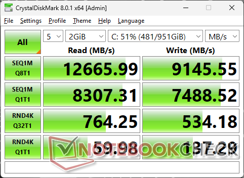 El funcionamiento con batería limita el rendimiento. Una prueba de Fire Strike con baterías arrojaría unas puntuaciones de Física y Gráficos de 9820 y 6911 puntos, respectivamente, en comparación con los 23868 y 14295 puntos con la red eléctrica.