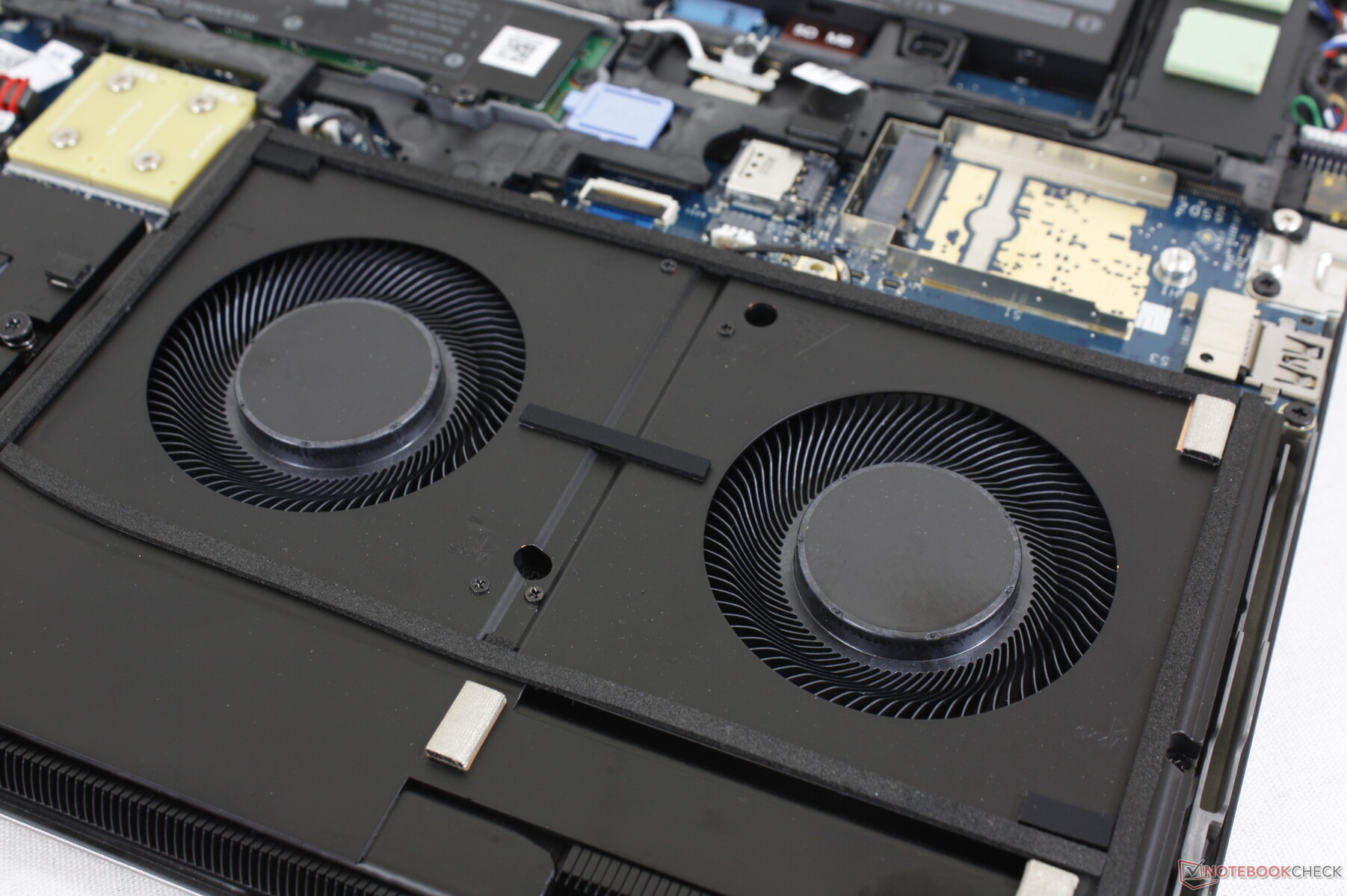 Ciertas configuraciones pueden albergar hasta tres SSD M.2, como lo demuestra la tercera ranura M.2 cerca del borde de la batería.