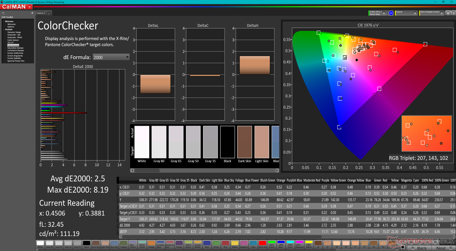 ΔE ColorChecker Calman: 2.5 | ∀{0.5-29.43 Ø4.78}