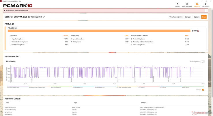 | HP ZBook Fury 15 G8 i9-11950H, RTX A5000 Laptop GPU, 94 Wh | HP ZBook Fury 15 G7 W-10885M, Quadro RTX 5000 Max-Q, 94 Wh | Dell Precision 5000 5560 i7-11850H, RTX A2000 Laptop GPU, 86 Wh | HP ZBook Studio 15 G8 i9-11950H, GeForce RTX 3070 Laptop GPU, 83 Wh | Lenovo ThinkPad P15s Gen2-20W6000GGE i7-1165G7, T500 Laptop GPU, 57 Wh | HP ZBook Firefly 15 G7 i7-10610U, Quadro P520, 53 Wh | |
