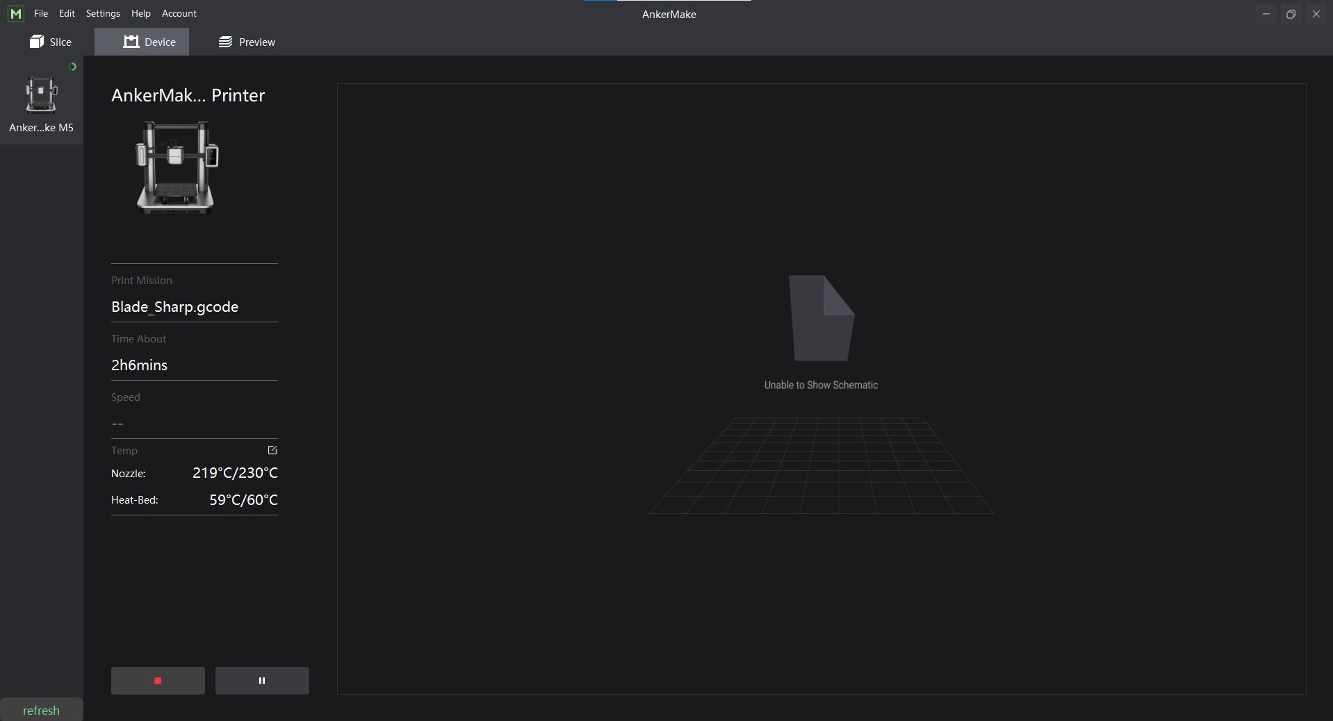 Si la AnkerMake M5 ya está conectada a wifi, los archivos de impresión se pueden transferir de forma inalámbrica a la memoria interna de la impresora. También es posible iniciar la impresión a través del programa y acceder simultáneamente a algunas de las otras funciones de la impresora.