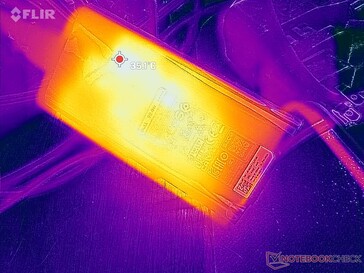 Las temperaturas superficiales no son un problema debido al grueso perfil robusto, como en la mayoría de los dispositivos robustos. En el peor de los casos, registramos un máximo de 40 C en el borde de la unidad más cercano a las rejillas de ventilación cuando la CPU está al 100% de su capacidad.