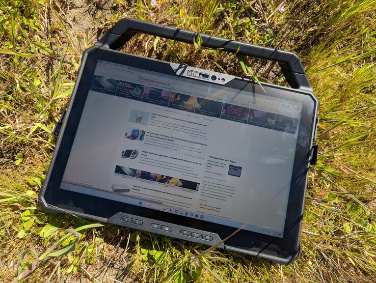 Con un peso aproximado de 1,6 kg, incluidas sus dos baterías extraíbles, es una de las tabletas robustas más ligeras de su categoría. La longitud y la anchura se acercan convenientemente a la norma DIN A4 si no se tiene en cuenta el asa de transporte extraíble.