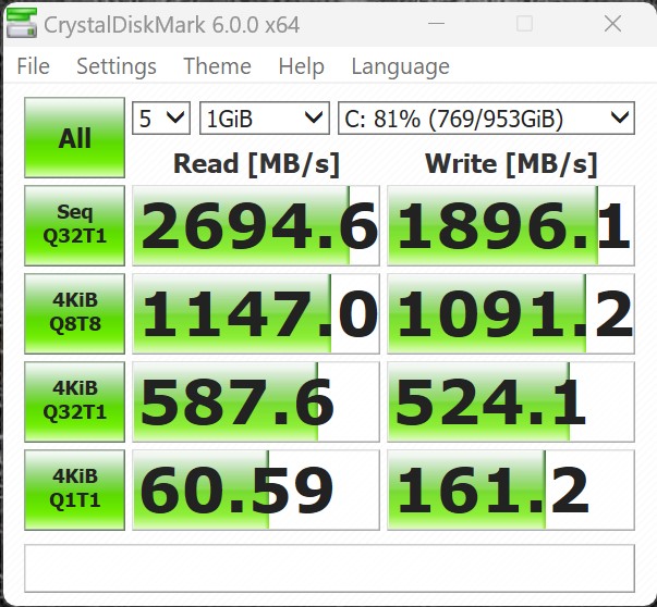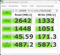Memory:PC ha instalado un SSD de Adata en nuestra muestra de prueba. El modelo de 1 TB usa la conexión M.2 y pudo alcanzar sólidas tasas de escritura y lectura. Desafortunadamente, el modelo instalado no fue capaz de establecer ningún nuevo récord. Aunque, esto no es necesario, ya que realmente no se nota en el uso diario de todos modos. Aún así, nos habría gustado ver tasas de lectura 4K ligeramente mejores. Con 26 MB/s, son algo bajas. Los modelos más rápidos son capaces de alcanzar los 100 MB/s a veces. Aunque el SSD instalado no tiene acceso a una unidad de refrigeración, sigue ofreciendo un rendimiento muy estable bajo carga. Presumiblemente, el refrigerador de la CPU (ventilador superior) toma suficiente aire fresco. No vemos ningún problema respecto a la cantidad de almacenamiento elegida. Al final, puedes instalar fácilmente más dispositivos de almacenamiento en el sistema. Uno se puede instalar directamente en la placa base como un SSD M.2. Los dispositivos de almacenamiento adicionales tienen que usar las conexiones SATA de la placa base.