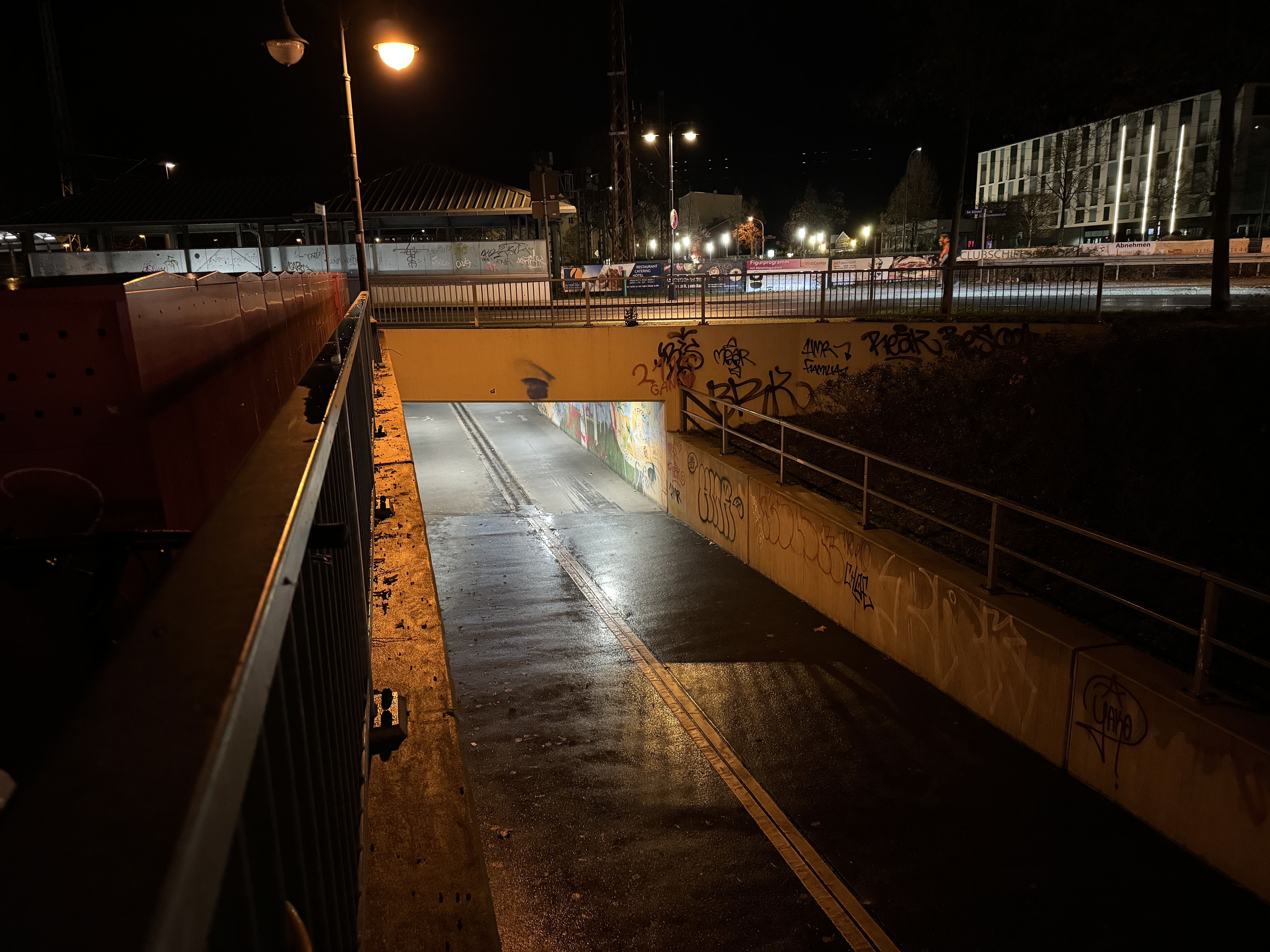 En la oscuridad, las imágenes de los teléfonos Xiaomi y Samsung suelen ser demasiado borrosas, ya que en ocasiones se pierden estructuras delicadas, como la fachada de la casa en la segunda imagen. En general, consideramos que el Galaxy S23 Ultra está ligeramente por delante del Xiaomi 13 Ultra aquí, ya que el teléfono de Samsung demuestra en el motivo del túnel que también tiene capacidad para dejar atrás a la competencia.