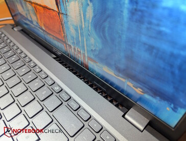 Utilizando la pestaña ligeramente elevada del centro, también puede plegar la tapa de la pantalla hasta 140 grados con una sola mano. Las bisagras son lo suficientemente rígidas para garantizar que la pantalla no se tambalee. Mientras que la tapa es de aluminio, la cubierta del teclado y la tapa inferior son de plástico. La sección de la base cruje al girarla. Aplicar presión sobre la sección de la base también puede provocar una ligera flexión, pero no tanta como para que se note al teclear. El chasis tampoco tiene huecos notables; el portátil tiene una calidad de construcción decente en general.