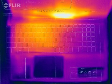 Durante el uso rutinario (oficina, internet) las temperaturas de la carcasa se mantienen en la zona verde. Bajo carga (test de estrés) el portátil apenas se calienta. Las temperaturas de la CPU rondan los 60 grados Celsius (140 F) y, por tanto, no son preocupantes.