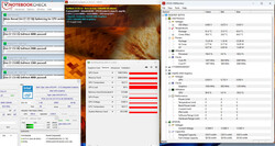 La prueba de estrés (Prime95 y Furmark funcionando durante al menos una hora) representa un escenario extremo para probar la estabilidad del sistema bajo carga completa. Al principio de la prueba, la CPU (3,4 GHz) y la GPU (1.250 MHz) alcanzan sus velocidades de reloj máximas. Mientras que la velocidad de reloj de la CPU baja a 1,4 GHz en el transcurso de la prueba, la velocidad de reloj de la GPU se estabiliza en 1.000 MHz.