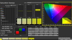 La pantalla muestra los colores de forma bastante decente al sacarla de la caja y la ligera desviación de color no es perceptible. Una calibración aporta mejoras significativas: La pantalla puede reproducir casi completamente los espacios de color sRGB (99,8%) y DCI-P3 (96%), y se reproduce el 85% del espacio de color AdobeRGB.