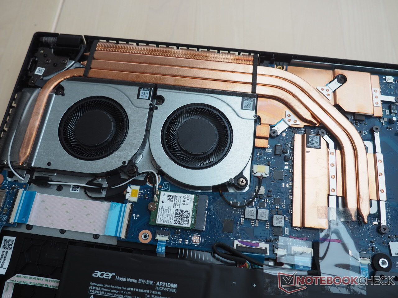 Una ventaja del Nitro es su facilidad de mantenimiento. A pesar de que la cubierta inferior se mantiene bastante firme incluso después de retirar los once tornillos de la carcasa, una vez que acceda al interior del portátil de 15 pulgadas, tendrá acceso a una ranura M.2 libre y a una ranura de RAM vacía (ver fotos). Aunque la configuración de una sola RAM en nuestra unidad de revisión puede afectar negativamente al rendimiento en algunas situaciones. Una cosa a tener en cuenta: la batería no está atornillada y teóricamente puede caerse del chasis al abrir el portátil.