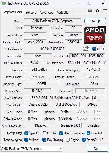 | Acer Nitro V 16 ANV16-41-R5AT AMD Ryzen 7 8845HS ⎘ NVIDIA GeForce RTX 4060 Laptop GPU ⎘ 16 GB Memoría, 1024 GB SSD | Precio de catálogo: 1100 EUR | 2.5 kg | 25.5 mm | 16.00" 1920x1200 142 PPI IPS | |