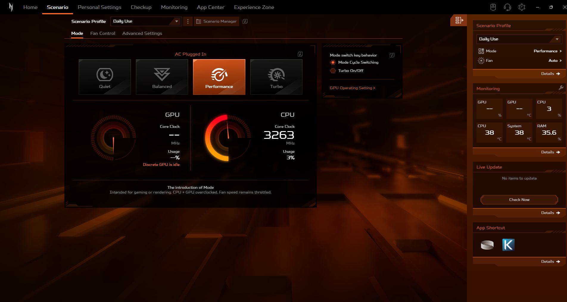 En modo de suspensión, sin embargo, el consumo de energía es demasiado elevado, de 8 W, debido a los ventiladores que giran periódicamente. Cuando se utiliza un monitor externo a través de HDMI, la GPU dedicada permanece activa