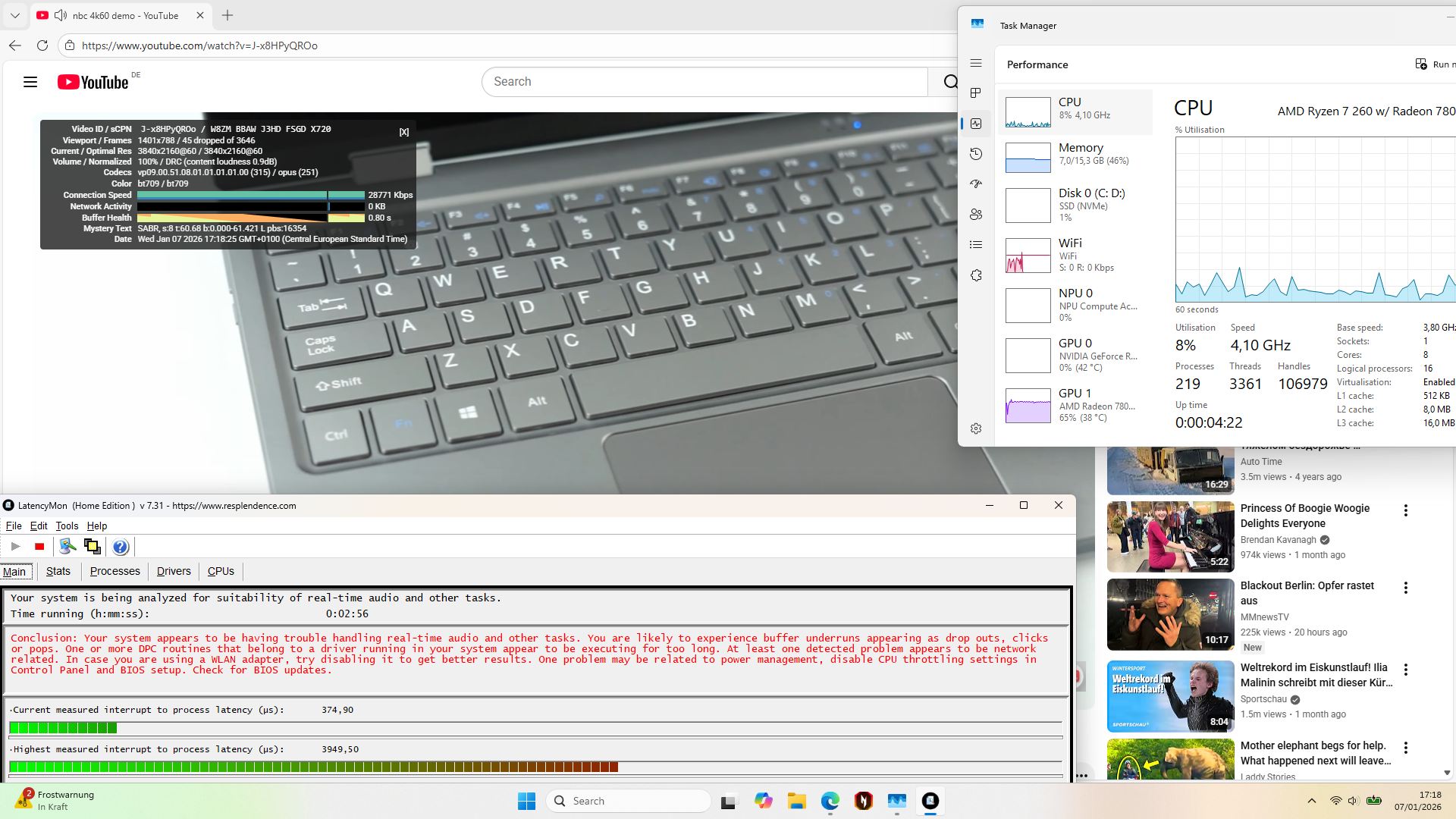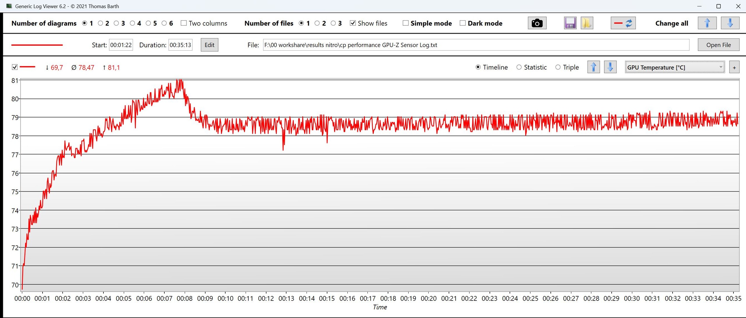 El Acer Nitro V 17 se dirige directamente a los jugadores preocupados por el presupuesto que valoran el juego silencioso y de bajo consumo por encima de la máxima velocidad de fotogramas. Como ejemplo: el Lenovo LOQ 17 es un cinco por ciento más rápido en Cyberpunk 2077, pero también un 17 por ciento más ruidoso y consume un 56 por ciento más de energía.