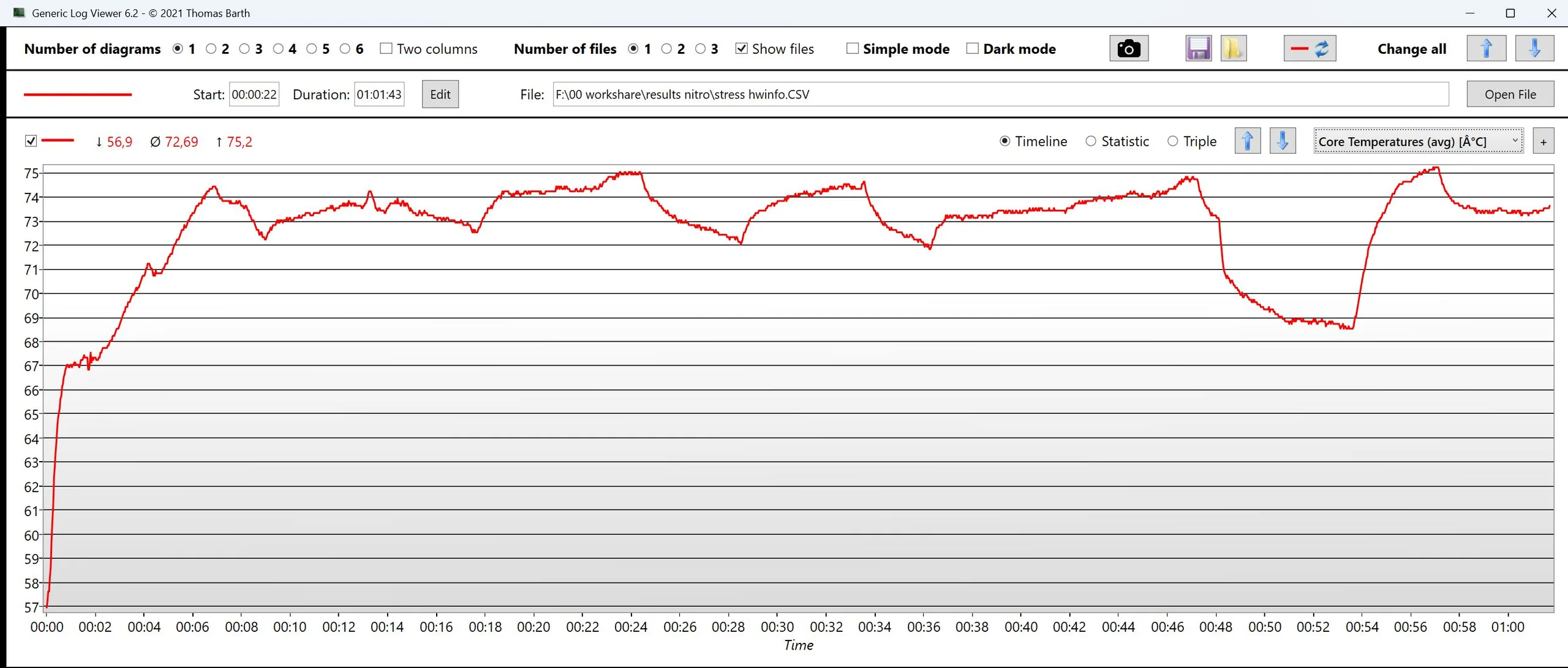 | Prime95 + FurMark Stress | 4,2 | 1400 | 73 | 72 |