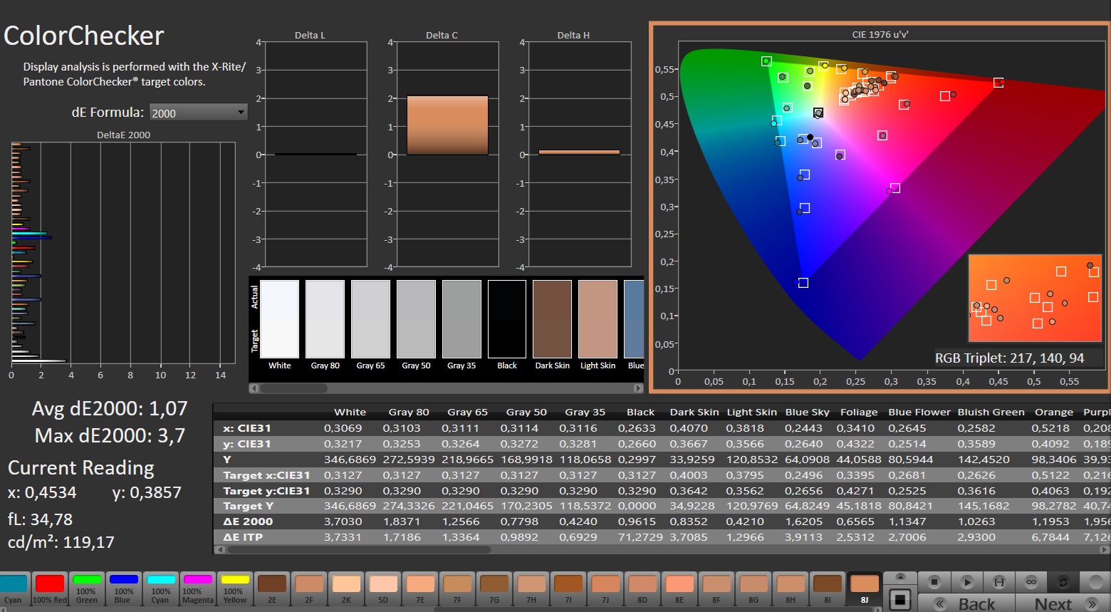 ΔE ColorChecker Calman: 1.07 | ∀{0.5-29.43 Ø4.78}