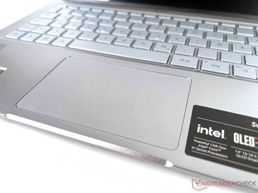 El Touchpad tiene un tamaño decente de 10,5 x 6,5 cm, ocupa exactamente un tercio de la longitud de la carcasa y está desplazado del centro por debajo de la tecla de espacio. Las dos áreas de clic en la parte inferior no están separadas hápticamente y ofrecen una respuesta acústica distinta. El touchpad en sí tiene buenas propiedades de deslizamiento y soporta gestos multitáctiles como el zoom y el desplazamiento para una buena experiencia de usuario en general.