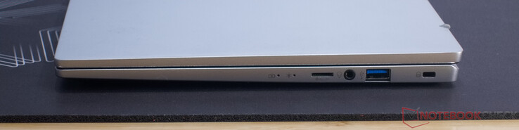 Es posible conectar hasta tres monitores al pequeño portátil a través de HDMI 2.1 y ambos puertos Thunderbolt 4. El actual procesador Intel Meteor Lake admite la salida a hasta cuatro monitores simultáneamente. Asimismo, Acer se las ha arreglado para albergar un lector de tarjetas microSD e incluso una mini ranura de bloqueo Kensington.