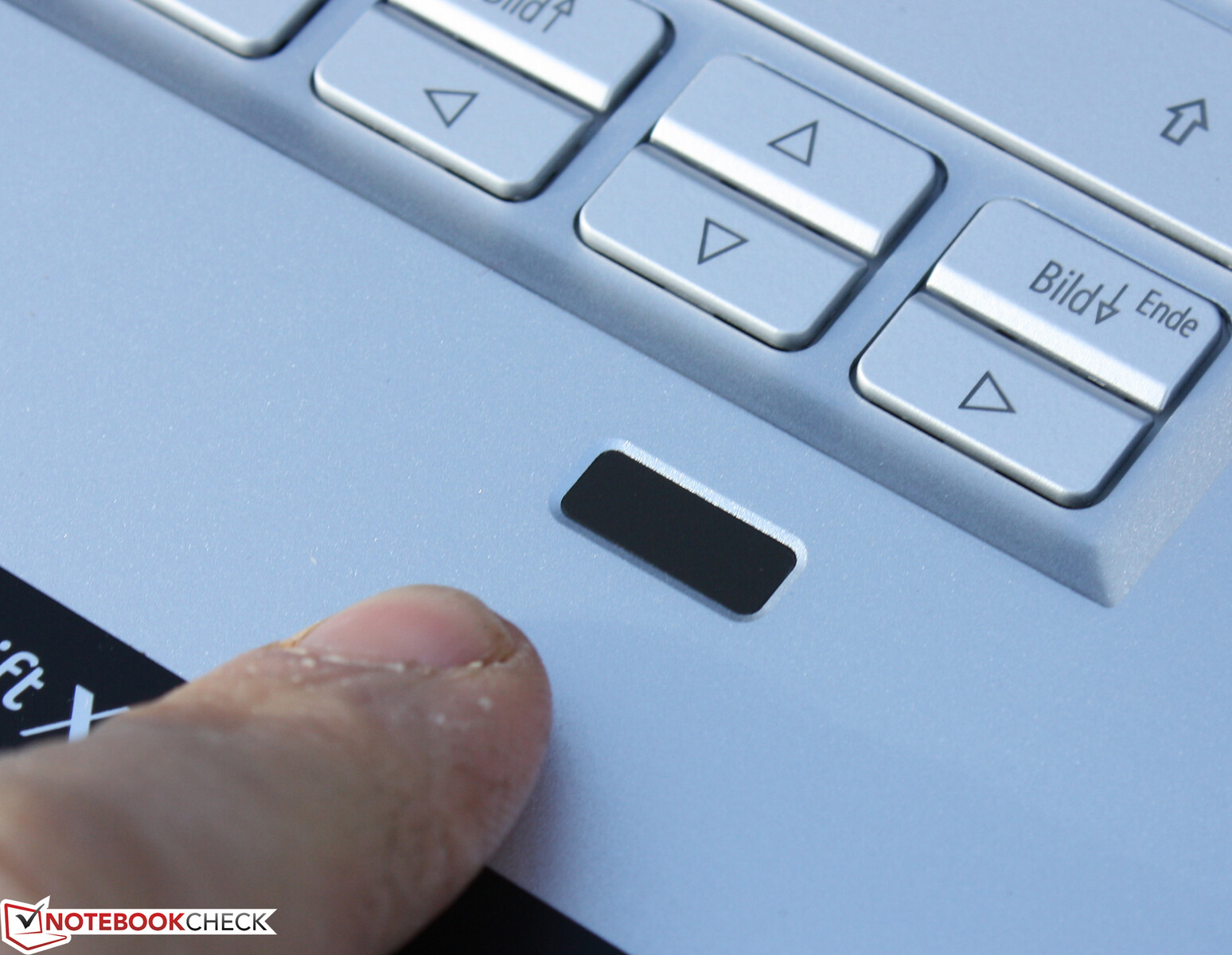 El swift gamer cuenta con un sensor de huellas dactilares y un bloqueo Kensington. La cámara web no está acompañada de una cámara IR. Por lo tanto, no es posible iniciar la sesión a través del reconocimiento facial. Preferimos la integración del lector de huellas dactilares debajo de las teclas de dirección a las integradas en un touchpad. Aquí, basta con poner un dedo.