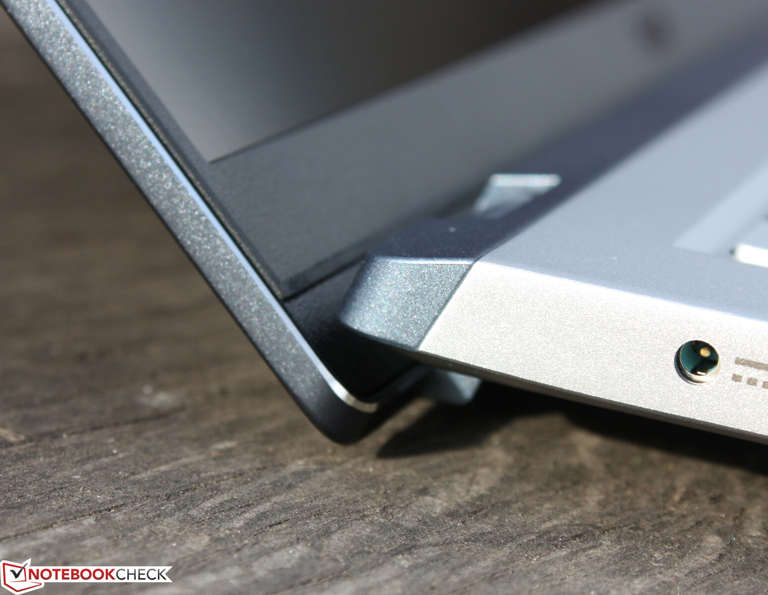 Nos gustó la firmeza de las bisagras, que evitan de forma fiable el tambaleo al transportar el dispositivo. La pantalla puede abrirse hasta un ángulo máximo de 130 grados. La tapa se puede abrir con una sola mano sin necesidad de sujetar la unidad base.