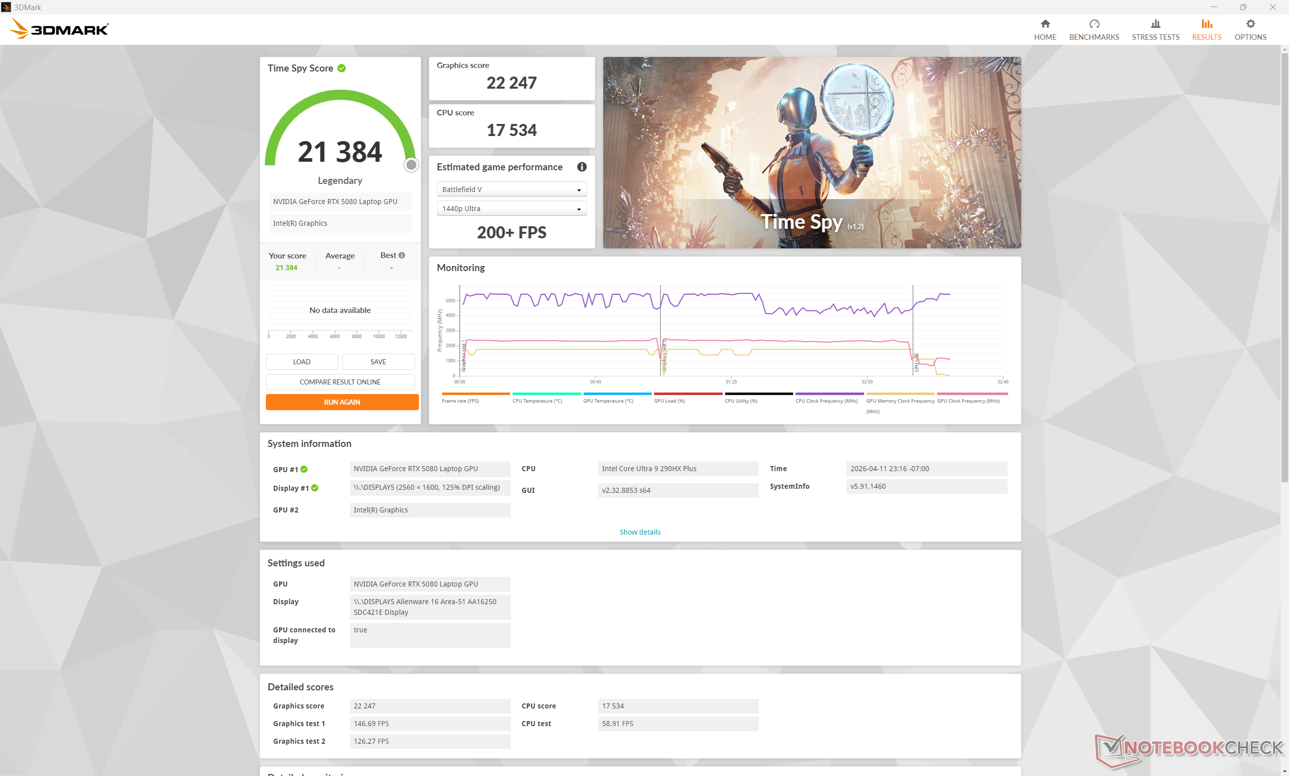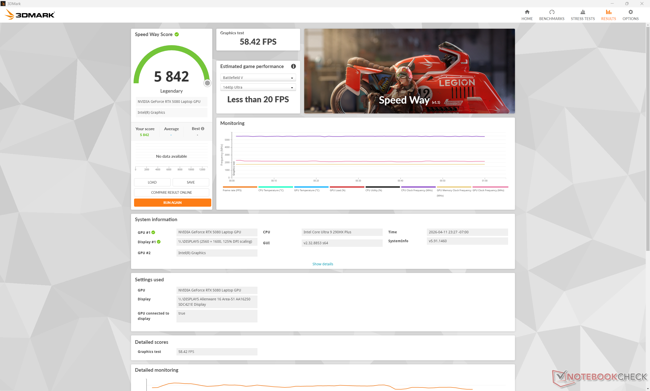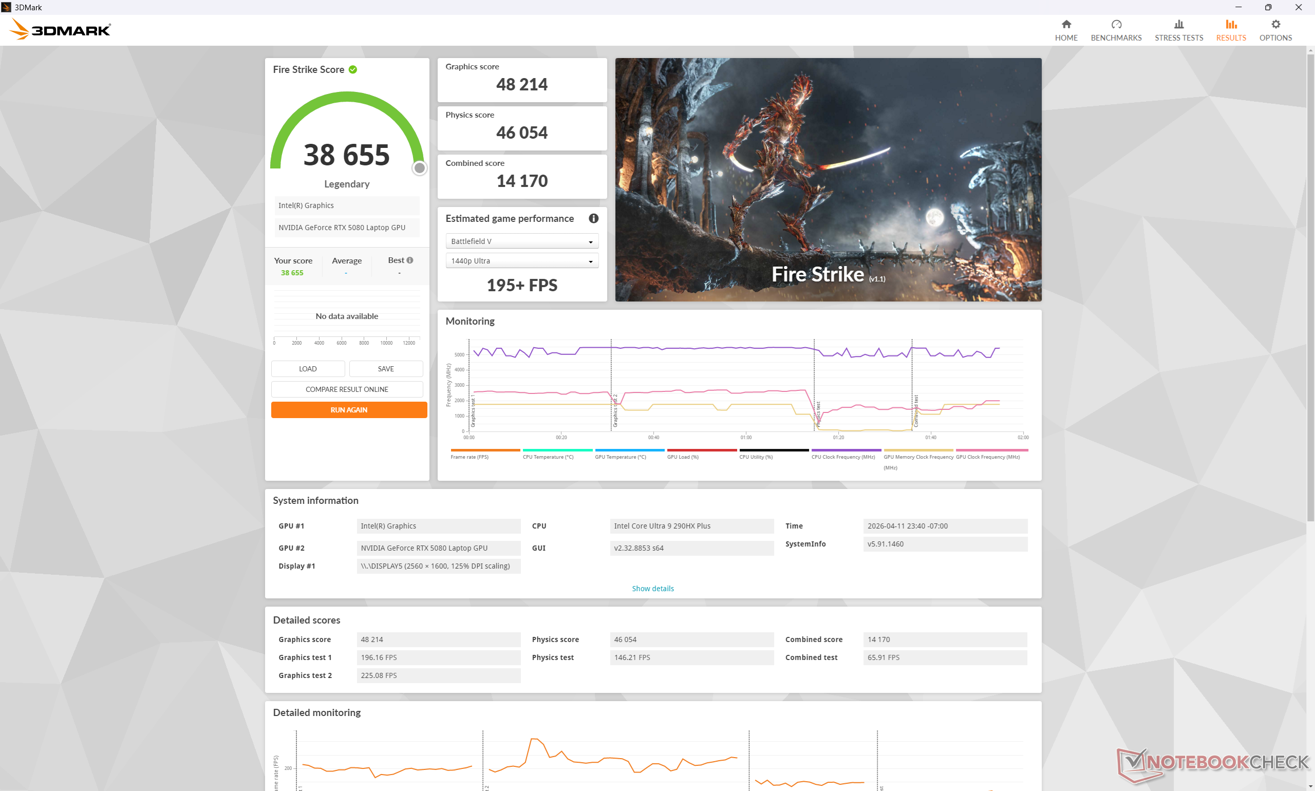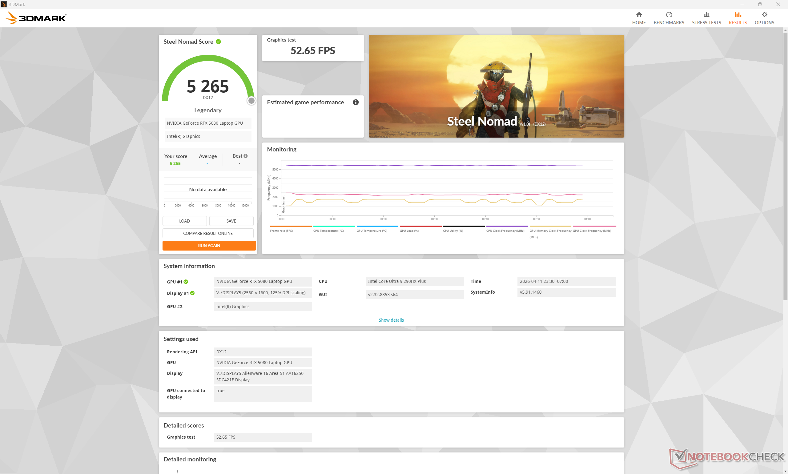 La temperatura de la GPU se mantendría más o menos igual que en el modelo 2025 al ejecutar Cyberpunk 2077. La temperatura de la CPU, sin embargo, sería más cálida en unos pocos grados C hasta los 82 C.