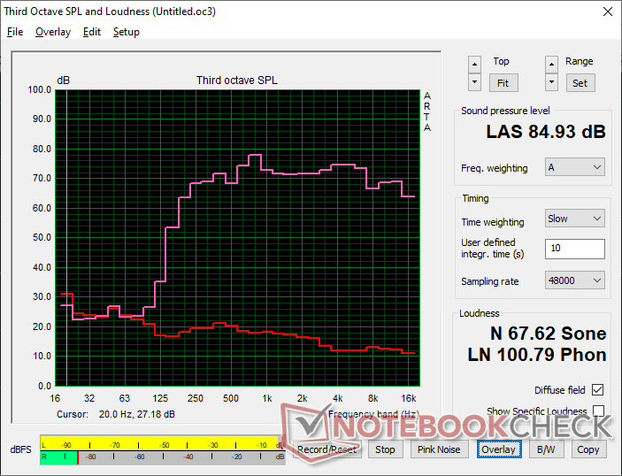 (+) | los altavoces pueden reproducir a un volumen relativamente alto (#84.7 dB)
