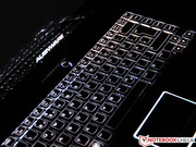 Gracias a su superficie cóncava y sus lados sesgados, las teclas de 18mm son fáciles de pulsar sin error. En algunos teclados chiclet, sólo los escritores muy hábiles pueden lograr eso. El firme y preciso punto de presión en combinación con una inusualmente generosa profundidad de golpe ofrecen un feedback excelente, que podría ser un ejemplo para mas de un portátil de empresa. A diferencia de nuestro último test, no pudimos encontrar ninguna tecla chirriante, pero aún así, este teclado no es el ejemplo mas silencioso de su especie, con su mínimo sonido de tableteo al escribir.