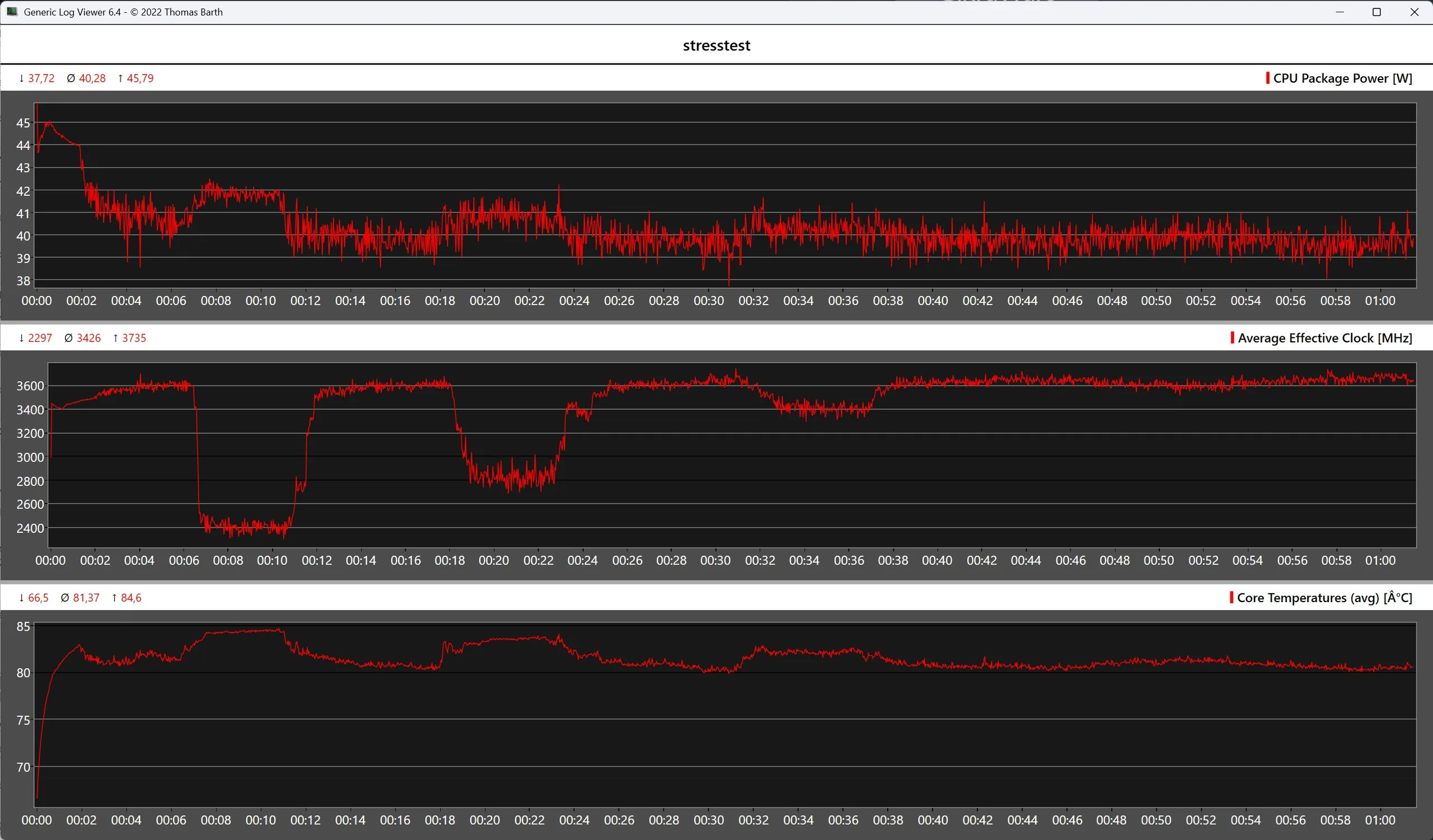 La carcasa del Alliwava GH8 no muestra ninguna anomalía extrema ni en modo inactivo ni bajo carga sostenida. En la prueba de estrés, el AMD Ryzen 9 8945HS instalado alcanza brevemente temperaturas de unos 85 C, por lo que se encuentra claramente en el rango no crítico. El sistema de refrigeración puede disipar de forma fiable un TDP aplicado permanentemente de 40 vatios, aunque la temperatura del SoC se estabiliza en torno a los 81 C.