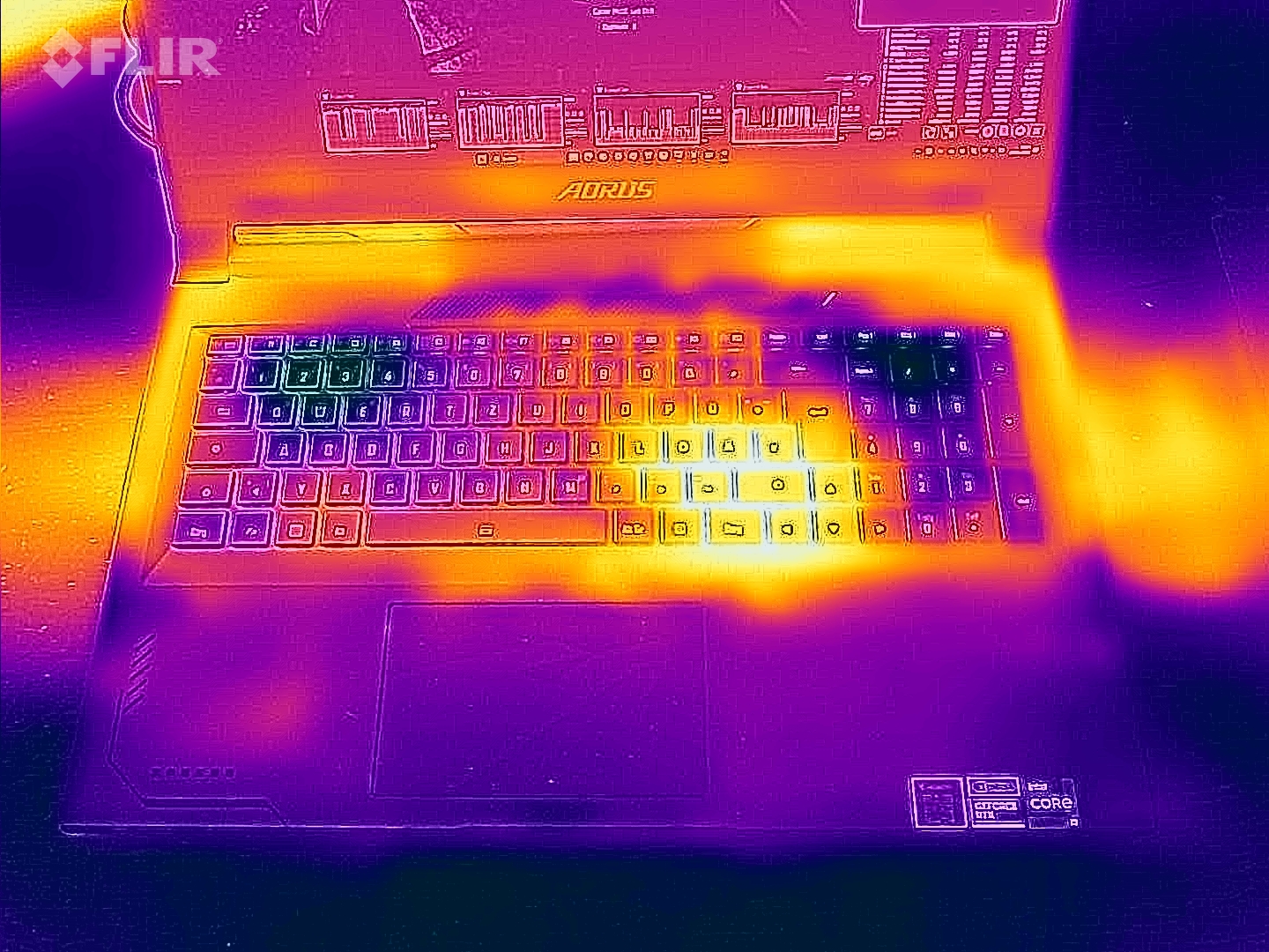 No se observaron altas temperaturas de la carcasa en el simple uso diario en oficina e internet. Sólo bajo carga, como durante pruebas de estrés o juegos, el portátil se calienta significativamente. Registramos los mayores índices en la parte inferior y en la zona de las salidas del ventilador.