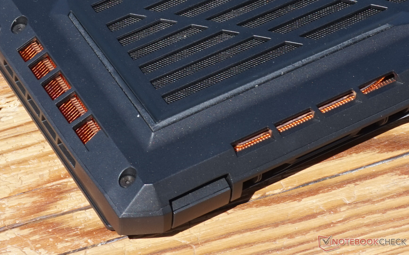 Una gran parte del calor se elimina a través de la parte inferior, que se vuelve varios grados más caliente que la parte superior. Medimos un valor máximo de 65 °C (149 °F). Esto también significa que no deberías usar el Aorus 17X sobre una superficie acolchada, sino que es mejor colocarlo sobre una superficie sólida como un escritorio.